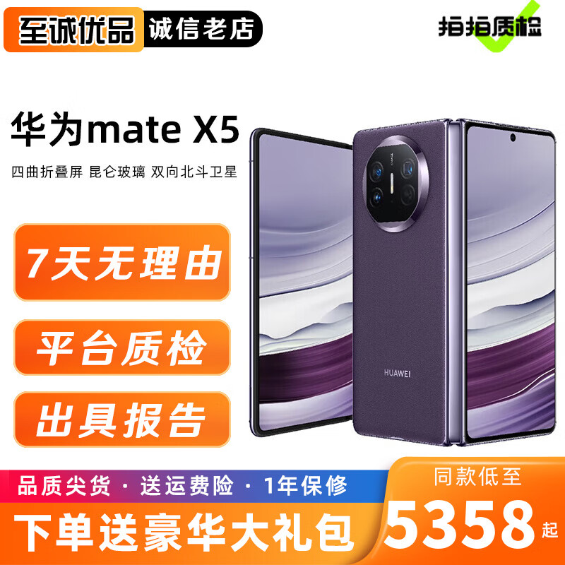 华为 HUAWEI Mate X5 折叠屏二手手机 昆仑玻璃旗舰大屏商务 双向北斗卫星消息 幻影紫 12GB+256GB 99新(尖货 电池健康高)