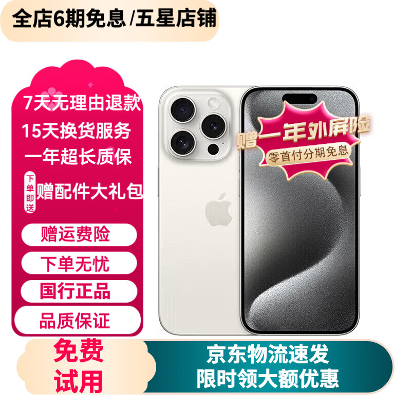 Apple iPhone15Pro 苹果15pro max苹果国行5G二手手机 三方屏幕 苹果15Pro 白色钛金属 9成新 【零首付六期免息+极速发货】256G