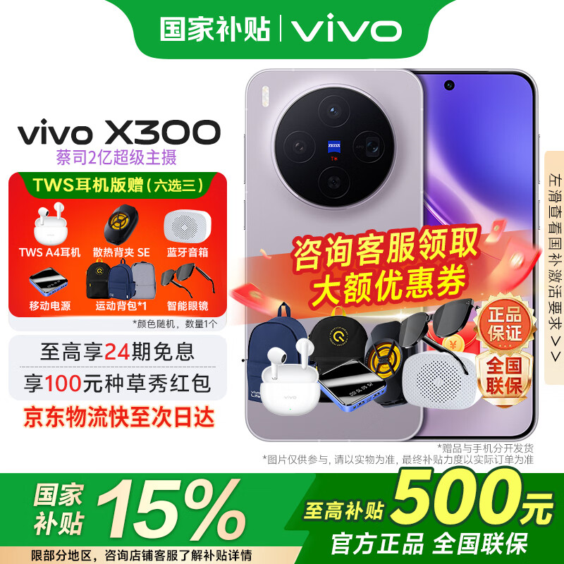 vivoX300 国家补贴新品5G旗舰vivo x300上市 蔡司2亿超级主摄APO超级长焦5年持久流畅AI手机办公拍照 惬意紫 12GB 256GB 官方标配版