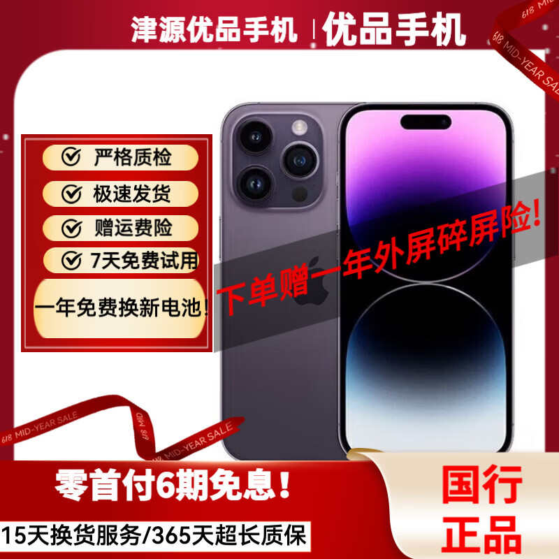 AppleiPhone苹果14Pro 苹果14ProMax二手手机二手苹果手机 【三方屏幕】 苹果14Pro 暗夜紫色 9成新 128G【极速发货+零首付免息】评价有礼