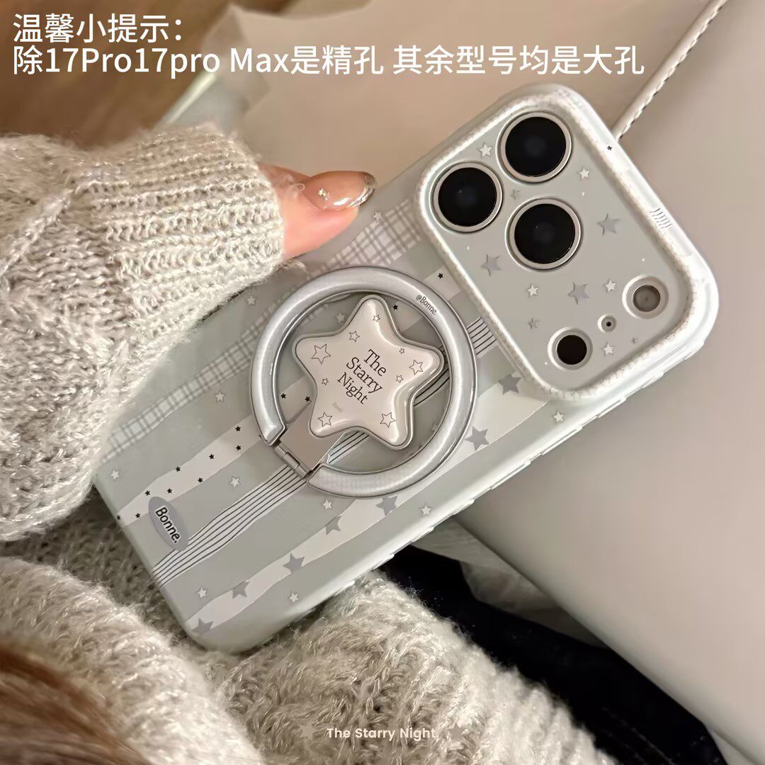 【原创】奶油蓝星星适用苹果17promax手机壳iphone16条纹磁吸支架15防摔13