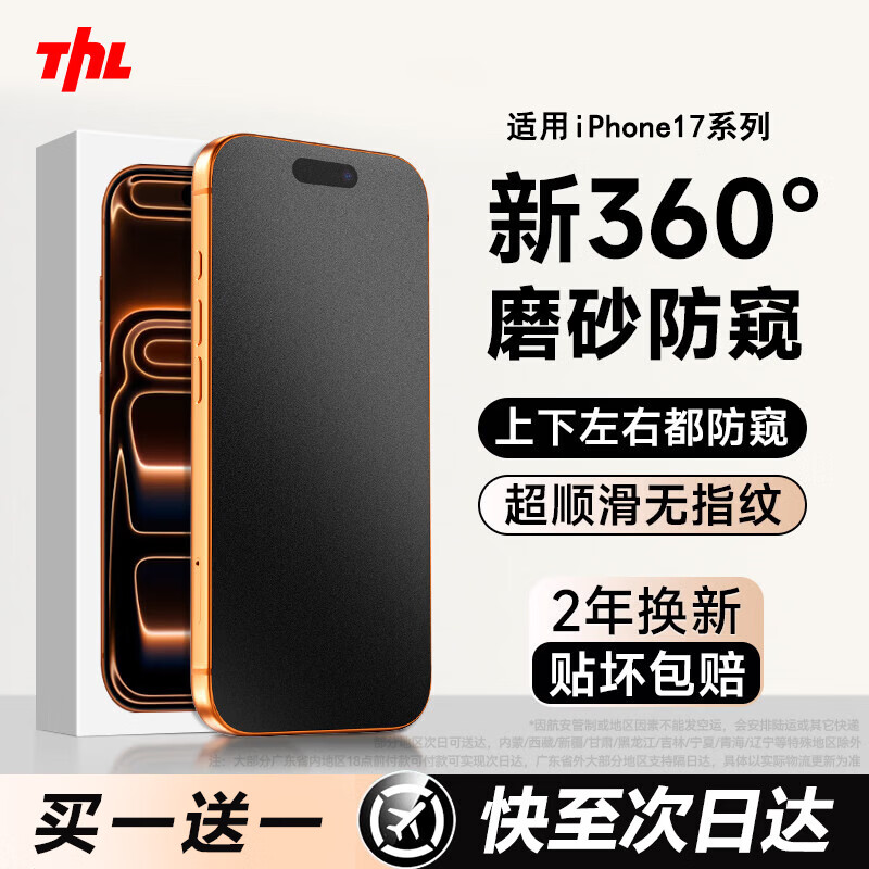 TEHAOLA【360磨砂防窥膜】适用苹果17promax钢化膜磨砂防窥iPhone16Promax手机贴膜苹果15Pro磨砂14防偷窥 【2套装】360°防窥磨砂膜+无尘仓神器丨顺滑灵敏 苹果17Promax