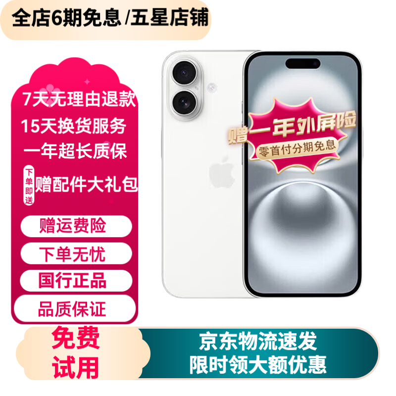 AppleiPhone 16 苹果16Pro 苹果16pro Max二手苹果手机 【三方屏幕】 苹果16 白色【第三方屏幕】 9成新 【零首付六期免息+极速发货】128G