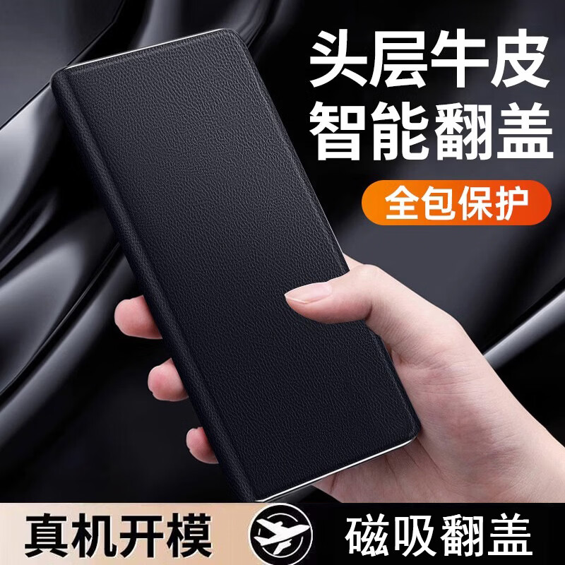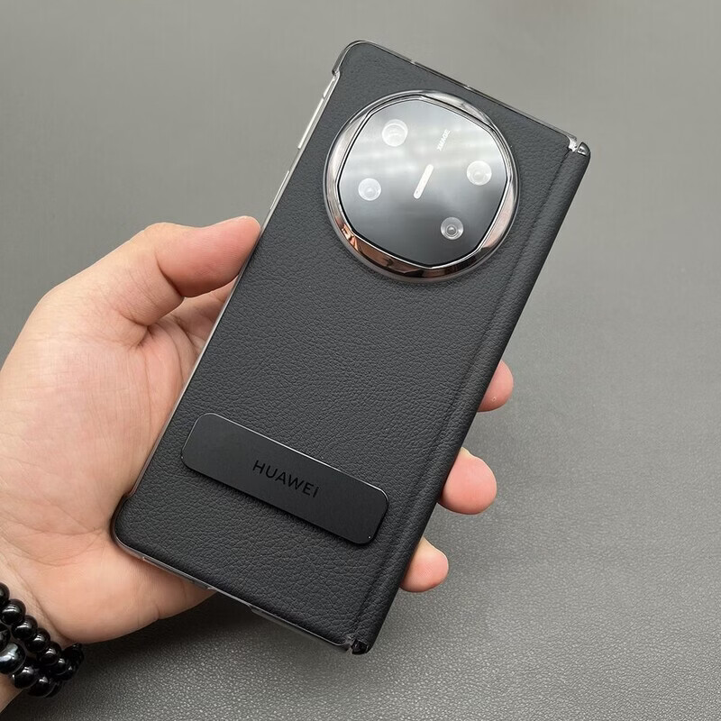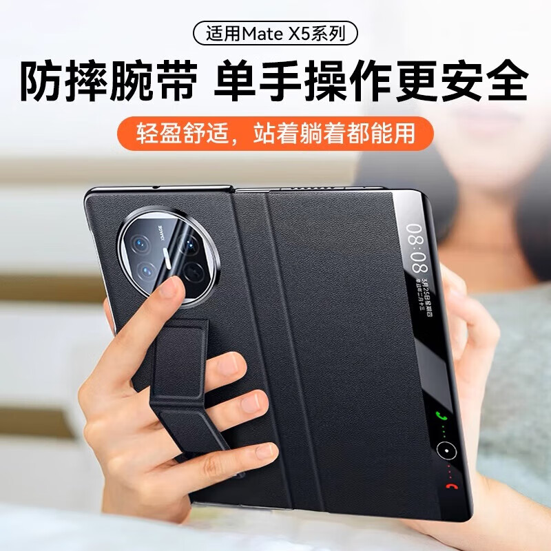 京工智造严选 【隐形支架】适用华为matex5手机壳x5折叠屏典藏版真素皮保护套x3智能视窗商务全包超薄防摔商务 x5/x3通用丨腕带支架款【羽纱黑】智能视窗