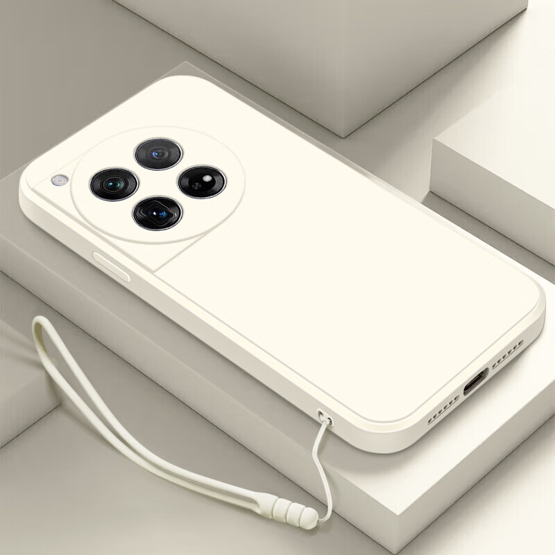 彩画家 适用一加12/13手机壳Ace3简约带挂绳1+11仿液态硅胶防摔10Pro镜头全包保护套女男新款纯色超薄直 一加12【古董白】+挂绳