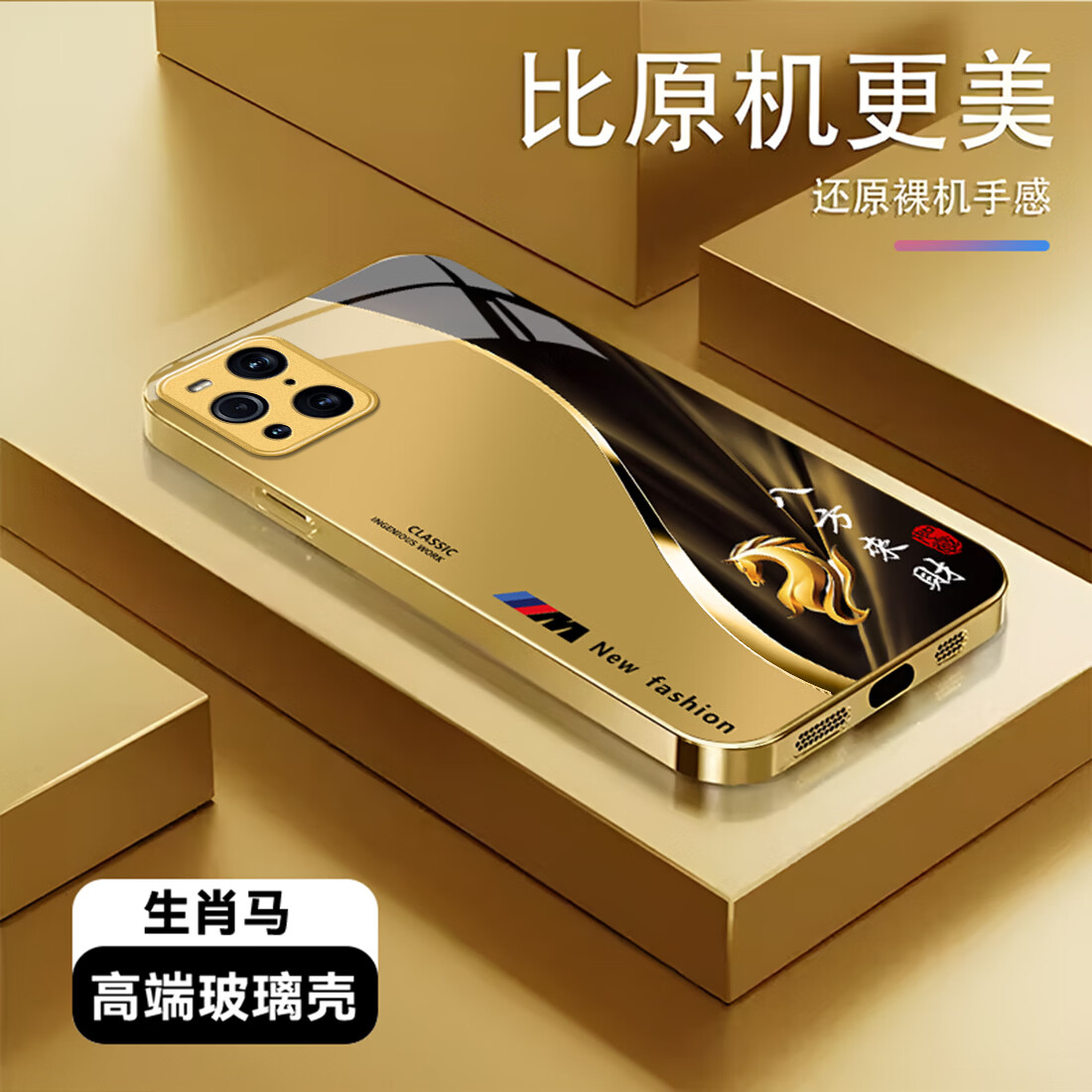 适用【oppo find x3 pro】手机壳2026新款马年生肖定制玻璃手机壳 鎏金生肖马 oppo find x3 pro