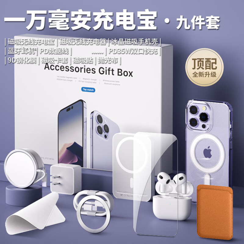 赫扬华强北六件套3C认证九适用17苹果6件套装9顶配16pro max手机壳15配件磁吸充电宝蓝牙耳机无线充电 9件套顶配【6䒫耳机+35w双孔快充+1万毫安时】 苹果15ProMax