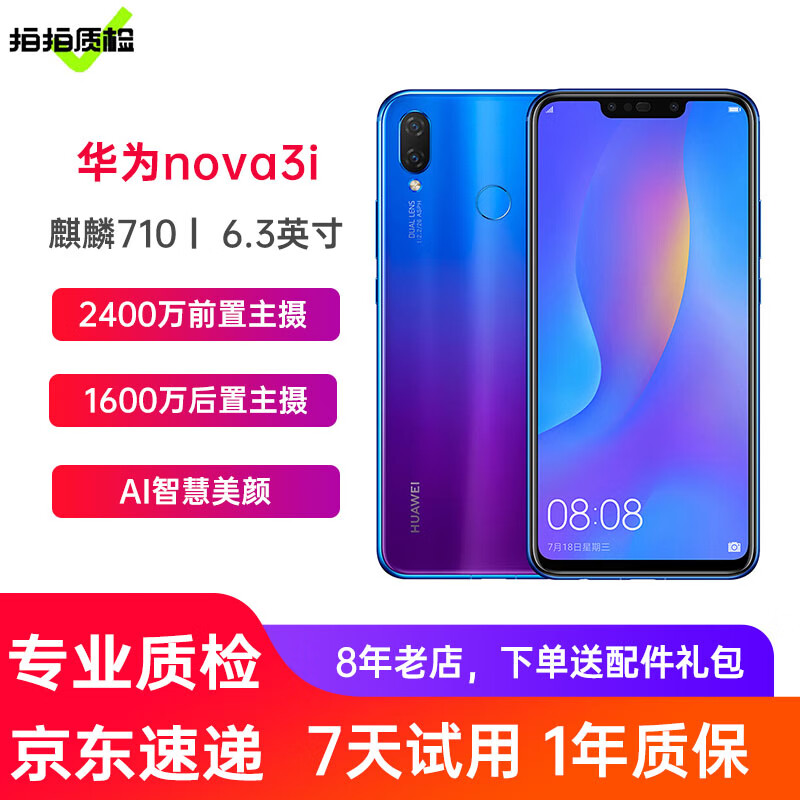 华为nova3i 二手手机二手华为手机 95新 蓝楹紫 6+64G全网通