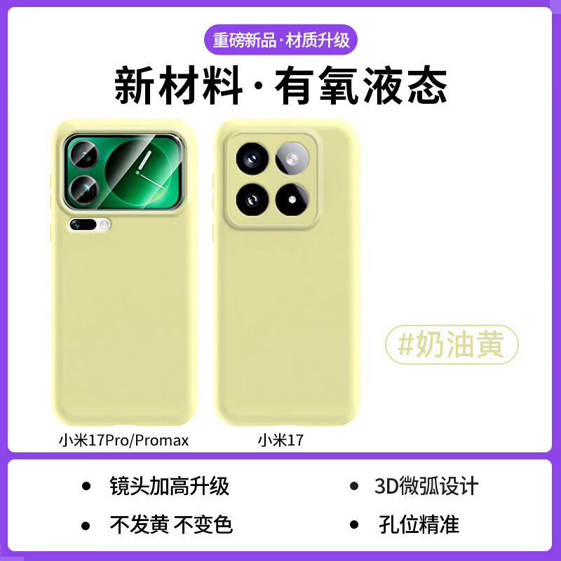 图璐璐适用小米17promax手机壳新款小米15液态硅胶17pro软14ultra镜头全包防摔圆边超薄简约高级感男女款 【奶油黄】升级3D圆边丨镜头全包精孔丨真液态硅胶 适用 小米15【臻品】