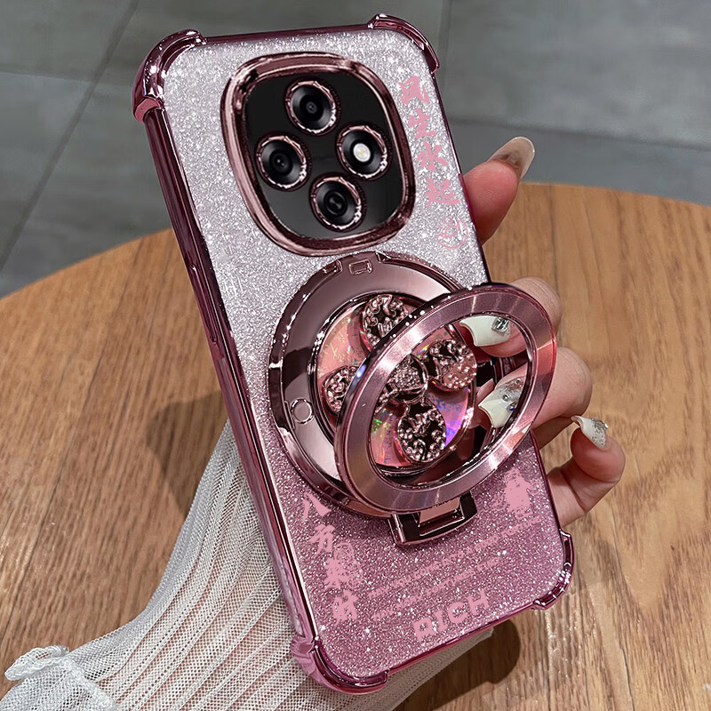 布洛文适用oppo a6pro手机壳oppoa5活力版透明a3pro带镜头膜气囊防摔软壳创意风生水起支架 【樱花粉-八方来财+闪粉纸】气囊丨风生水起旋转支架 OPPO A6 Pro