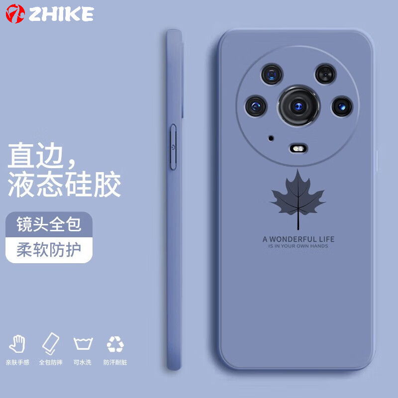 芝客 荣耀magic3手机壳 magic3pro保护套液态硅胶全包防摔简约枫叶时尚个性潮牌男女网红软壳 Magic3Pro【薰衣灰-枫叶】