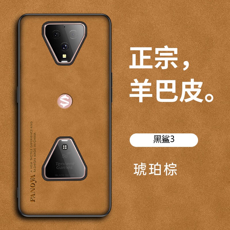 纽致适用小米黑鲨3手机壳黑鲨3pro保护套全包镜头防摔简约羊巴皮3s新款硅胶软磨砂防滑超薄商务外壳 【琥珀棕】羊巴皮 黑鲨 3 Pro