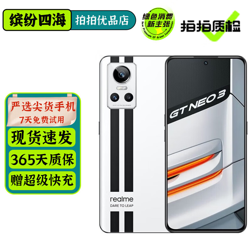 Realme真我GT Neo3 二手5G手机 独立显示芯片 赛道双条纹设计 电竞游戏手机 银石(80w闪充) 8GB+128GB【赠超级快充】 95新