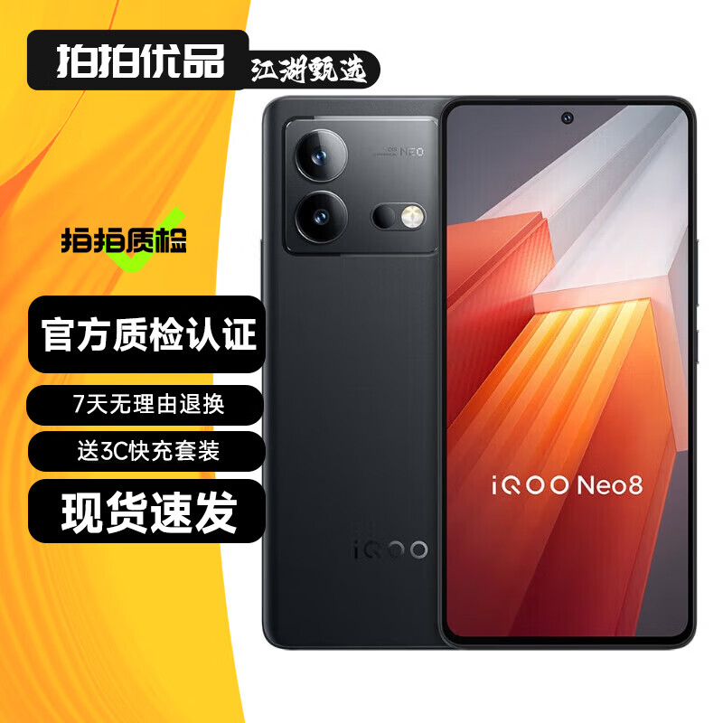 vivo iQOO Neo8 二手5G手机 骁龙8+ 144Hz护眼全面屏 自研芯片 游戏电竞手机 夜岩 12GB+256GB【赠3C快充套装】 99成新