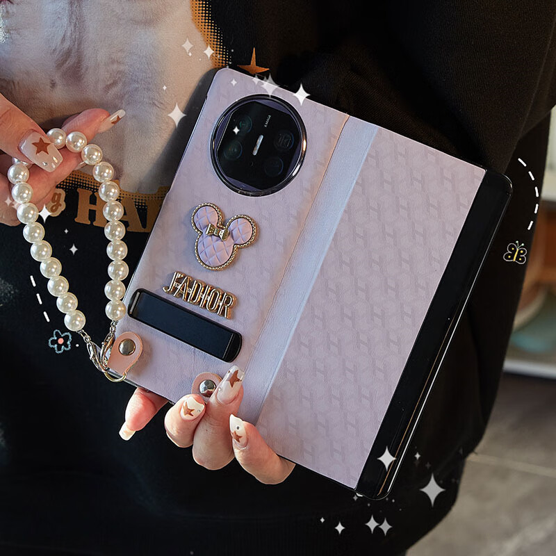 LENPY 澜品适用华为matex5手机壳Matex3新款折叠屏保护壳时尚手提链x5典藏版全包防摔x3典藏版米奇女款手机套 熏衣紫+卡通米奇+智能翻盖+隐形支架+手链 华为matex5典藏版