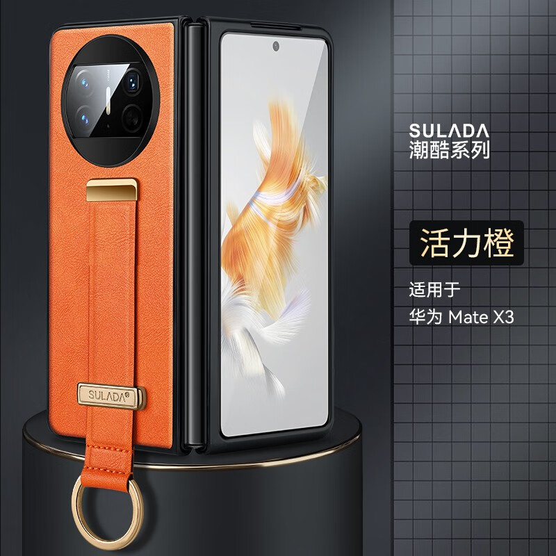 壳爵士 华为MateX3手机壳折叠屏HUAWEI MateX3保护套高端素皮腕带设计支架镜头全包防摔防指纹轻奢商务款 华为MateX3【活力橙】