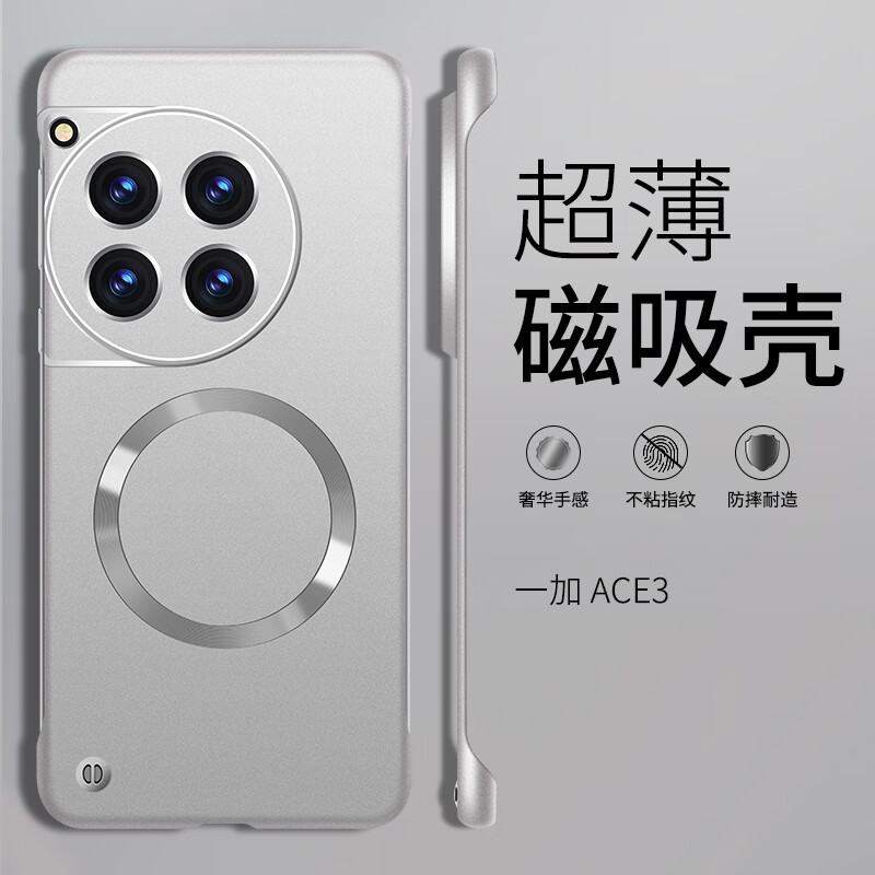 炫镖适用一加ace3手机壳微磨砂ace3pro无边框保护套ace3v磁吸散热金属漆硬壳oneplus时尚简约 【钛银色】磁吸超薄无边框金属漆 一加Ace3