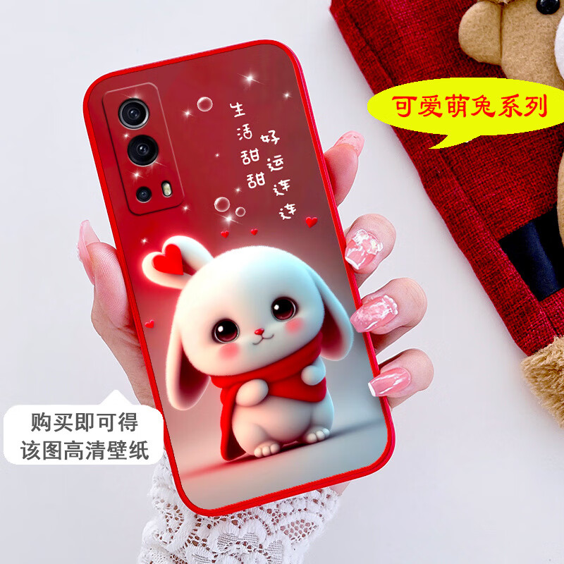 梦逸轩适用vivo iQOOZ3手机壳V2073A硅胶iQ00Z3萌兔软套磨砂防摔可爱女保护外壳全包 (红边)好运连连YZ 选项1(配全屏贴膜+手绳)