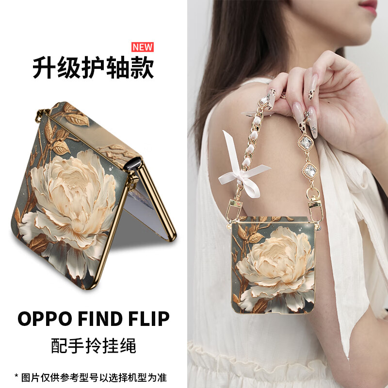 思唯创适用OPPO Find N3 Flip手机壳折叠屏新款findn2flip手机保护套望舒金莲女款全包防摔超薄防指纹 【望舒金莲】电镀皮纹+立体浮雕+挂绳 OPPO Find N3 Flip