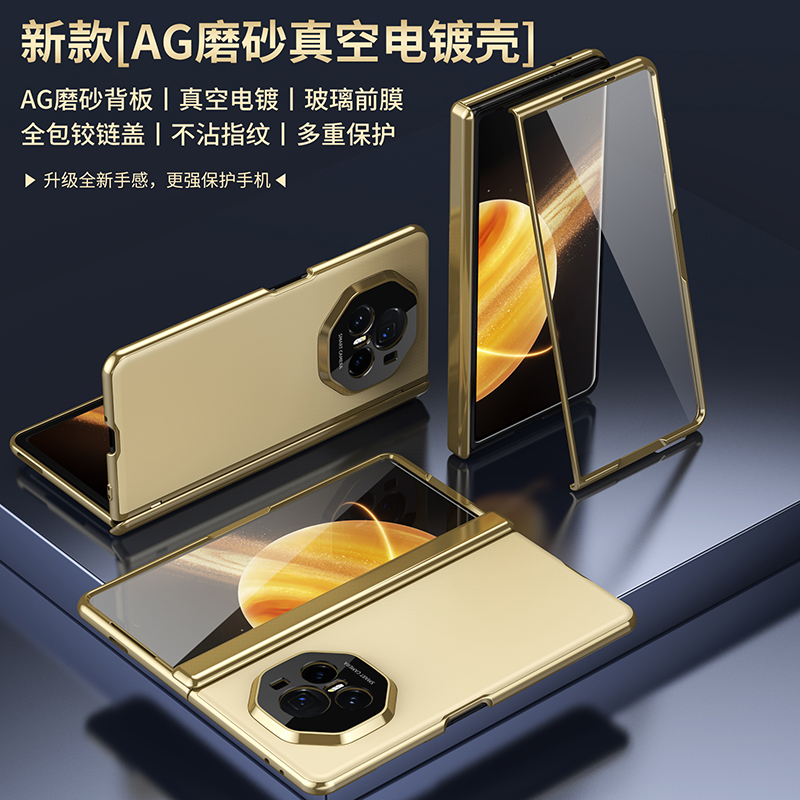 彩画家 适用荣耀magic vs3手机壳全包铰链防摔magicv3钢化壳膜套装保护套简约商务AG磨砂超薄男女士新款 荣耀MagicV3【金色】全包铰链壳膜套装