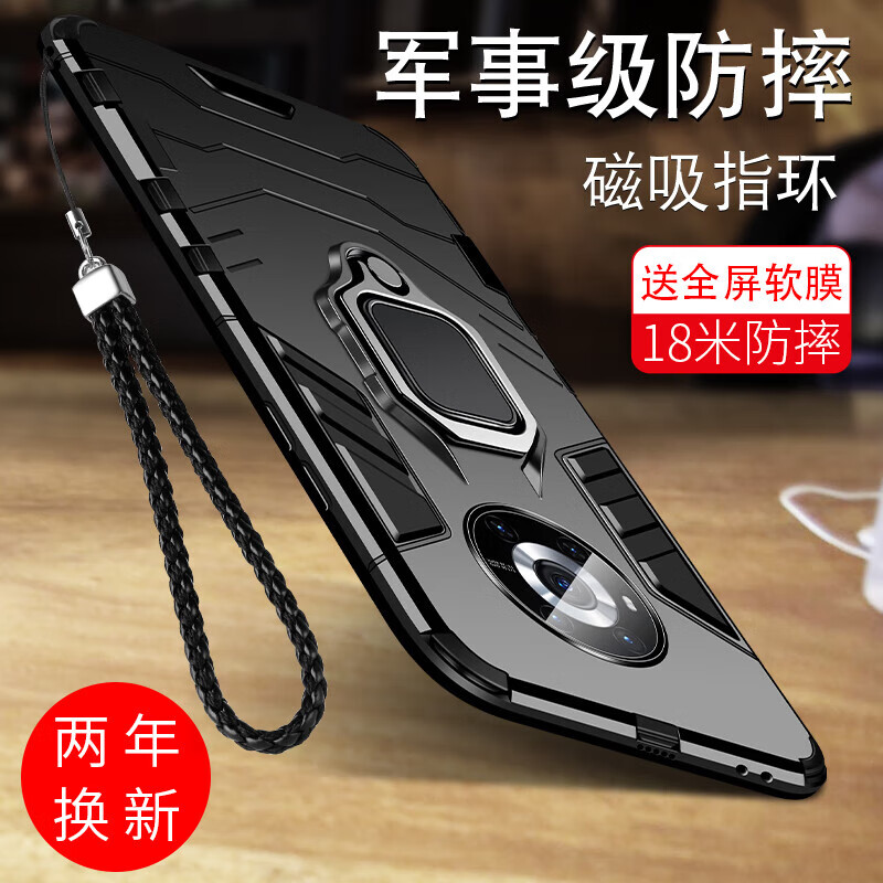 悦克荣耀magic3手机壳mgaic3pro保护套3至臻版硅胶ELZ一AN00全包5G男女防摔软壳 【磁吸指环款-深邃黑】全屏软膜+挂绳+磁吸指环 荣耀Mgic3