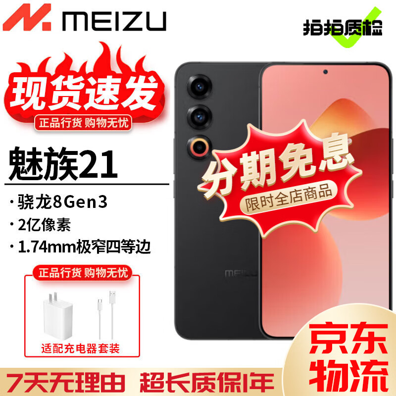 魅族(meizu)Meizu/魅族 魅族 21 直面屏第三代骁龙8Gen3智能游戏 2亿像素手机 无界黑 5G全网通 官方标配 快充 12GB+256G1