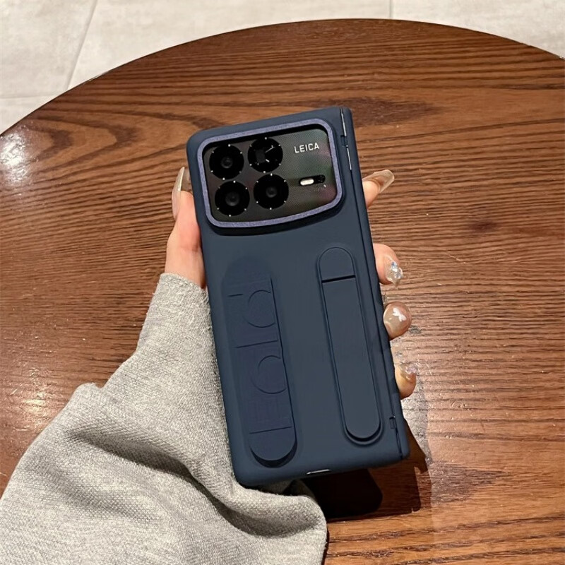 亿芯优控适用小米mixfold4手机壳新款纯色肤感磨砂腕带支架保护壳MIXFOLD3简约商务铰链全包防摔带膜手机壳 【蓝色】腕带支架款+壳膜一体-高清膜 小米 MIX Fold4