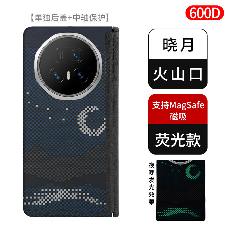 PinJoy荣耀Magic V3/V5手机壳v5超薄凯夫拉芳纶纤维VS3轻薄碳纤维保护套新款简约商务全包防摔耐磨磁吸黑 【中轴保护款/晓月丨荧光】磁吸 单独后壳 荣耀Magic V5
