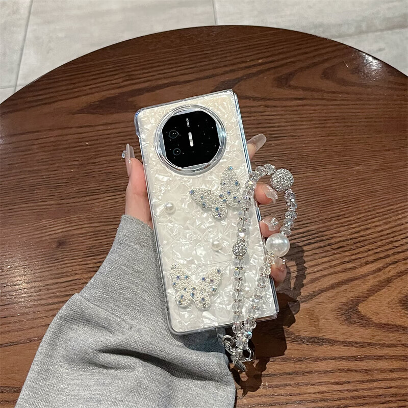 飞凡崛适用华为Matex6手机壳折叠屏matex5新款X3典藏版超薄白色贝壳纹蝴蝶珍珠镭射手链女全包防摔保护套 【白色*贝壳纹】立体蝴蝶*珍珠手链 华为 Mate X3 典藏版