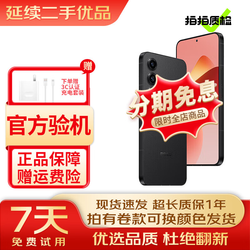 魅族21Pro魅族21 极窄四等边直屏 骁龙8Gen3 2亿像素 5G游戏学生拍照二手手机 魅族21【无界黑】 12+256 99新