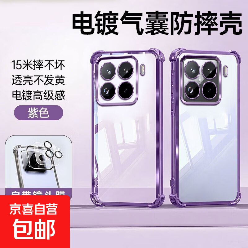 小米17/15/14/13/12手机壳pro保护套civi5/4/3四角气囊Ultra带镜头膜防摔散热高级感电镀透明外壳 【电镀气囊】暗夜紫 小米civi5Pro