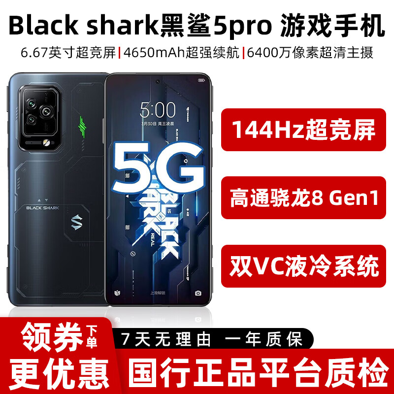 黑鲨5 pro 骁龙8gen1芯片 144hz高刷电竞屏双VC液冷散热系统5G智能游戏手机 黑鲨5 pro 陨石黑【赠送3c品牌充电器】 12GB+256GB 95新