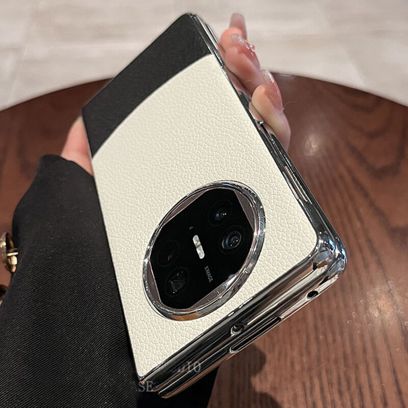 亿芯优控适用华为matex5手机壳新款折叠屏电镀荔枝纹保护壳华为MATE X3典藏版商务翻盖超薄防摔男女保护套 【白色拼黑色】电镀边框*皮面底壳 华为 Mate X5