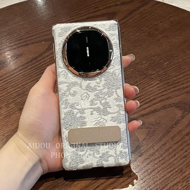 彩系华为matex6手机壳折叠新款MateX5典藏版高档真皮贡缎提花纹x3全包旋转支架毛绒手提防摔时尚保护套 旋转支架后壳-灰色 华为 Mate X6