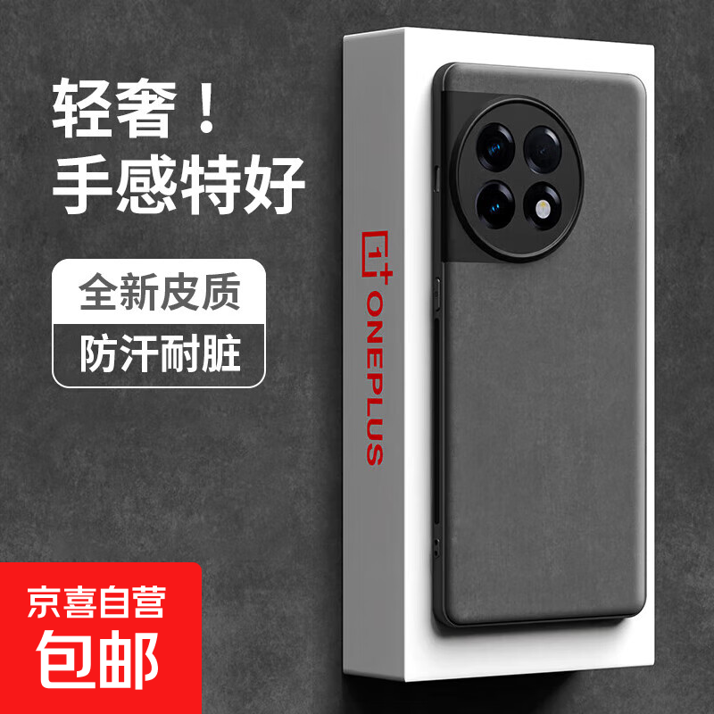 适用一加13手机壳一加12/11/ace5/3/2Pro保护套V轻奢高端皮质商务硅胶防摔全包防滑防指纹肤感 轻奢肤感羊巴皮【静夜黑】 一加11