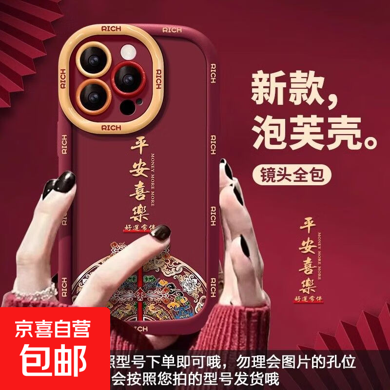 泡芙壳适用VIVO/OPPO手机壳保护套全包防摔创意潮流男女款 泡芙壳-酒红色-X144平安喜樂 IQOONEO3/IQOOz1