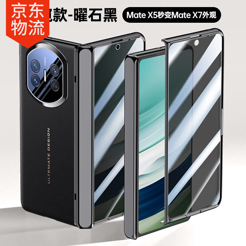 特唛购【matex5秒变x7】适用华为mate x5手机壳Mate X3典藏版折叠屏保护套全包镜头防摔超薄素皮高级商务 防窥款【曜石黑】壳膜一体 华为Mate X5/X3典藏版