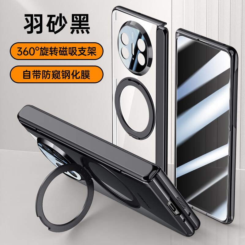 壳爵士 华为MateX5手机壳X5典藏版X3壳膜一体弹簧中轴铰链车载磁吸高清透明双面全包防摔旋转支架保护壳 华为MateX5 黑色【防窥】360°磁吸旋转支架