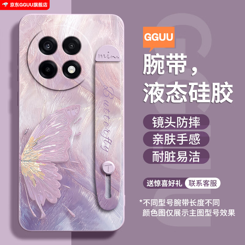GGUU蝴蝶适用一加13手机壳新款ACE5套1加13的ACE5pro硅胶oppo系列十三ACE3腕带支架1+全包1+12防摔ACE2 草紫色-半边鎏金蝴蝶腕带 一加12