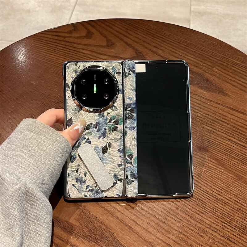 彩系适用华为matex6手机壳折叠屏x5新款Mate X3典藏版旋转支架蓝花纹真皮电镀铰链壳膜全包防摔保护套 浮雕蓝花-真皮旋转支架-高清膜 华为 Mate X6典藏版