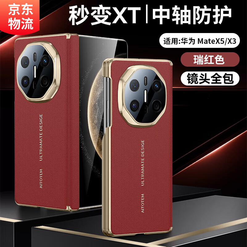 米尼鹿 华为matex5手机壳MateX6翻盖保护套全包智能视窗双中轴MateX3典藏版镜头防摔翻盖后壳女男款皮套 【瑞红色】后壳款|双轴全包 华为 MateX6/典藏版通用