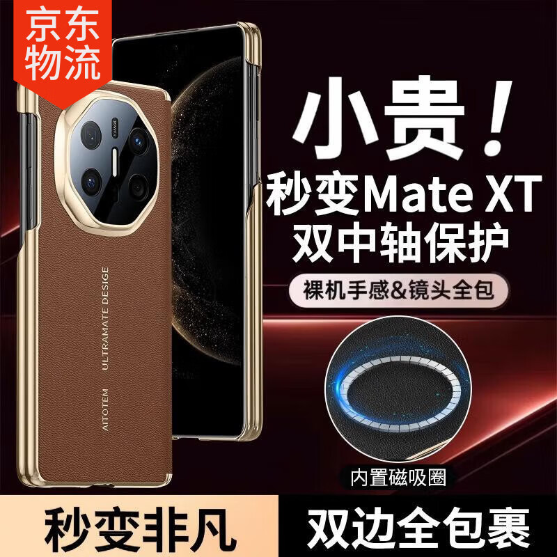 特唛购【纳帕纹双中轴款】华为matex5手机壳MateX3典藏版保护套精孔镜头内置磁吸车载轻薄半包防摔商务 双中轴磁吸【摩卡棕】 华为MateX5/X5典藏版