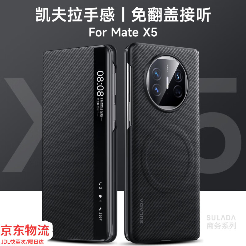 麦焕华为mateX5手机壳mateX3/X5典藏版智能免翻盖接听保护套凯夫拉600D皮质手感超薄防摔皮套 【黑色】磁吸翻盖皮套 华为mateX5/X5典藏版