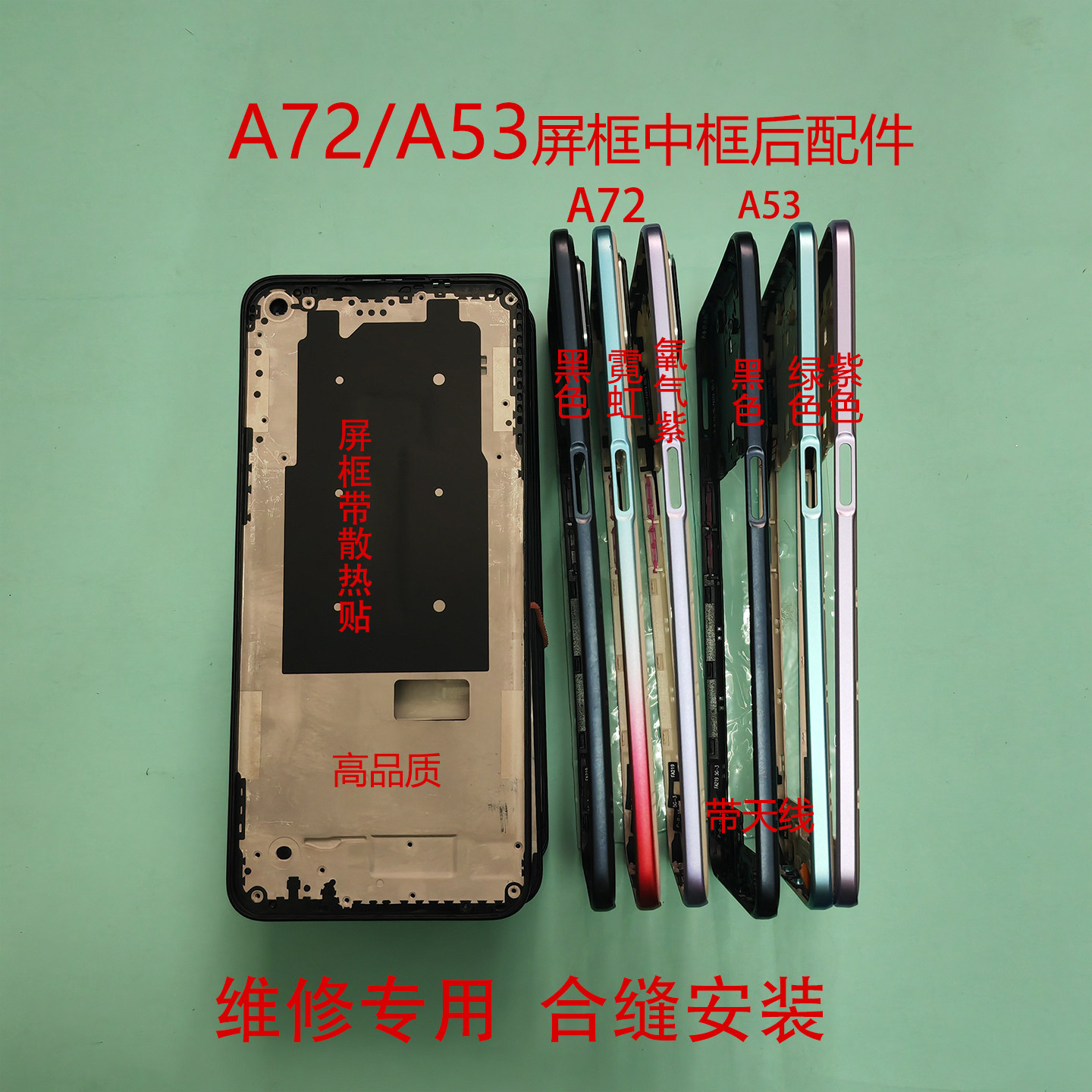 适用于A72后盖A53中框A52前框屏框后盖中壳电池盖