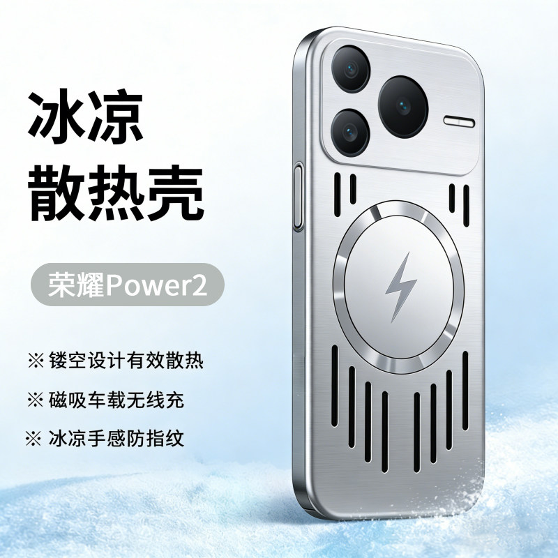 适用荣耀power2手机壳新款2026磁吸保护套散热专用全包防摔女高级感小众男士硬壳镂空外壳华为honor系列