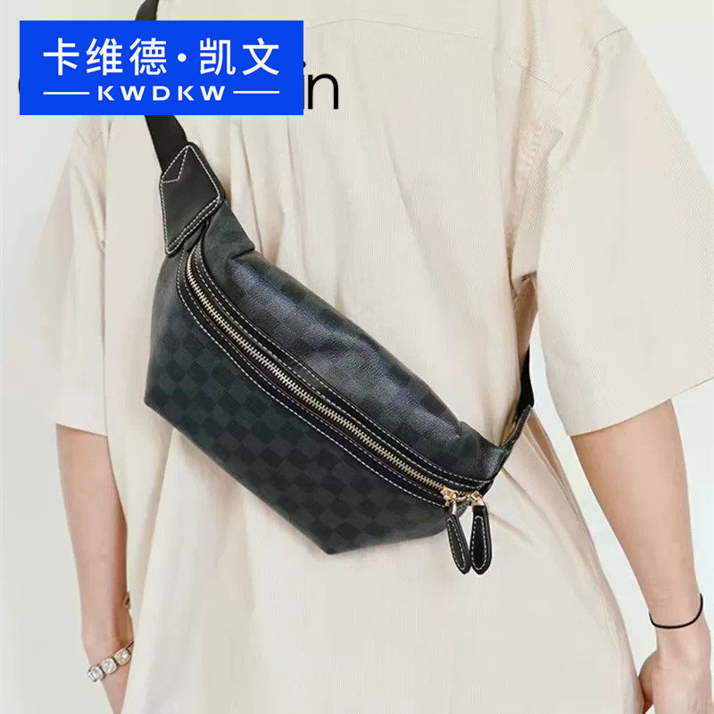 Cavid Kevin男士格子胸包小腰包百搭斜挎包手机包潮牌街头单肩包