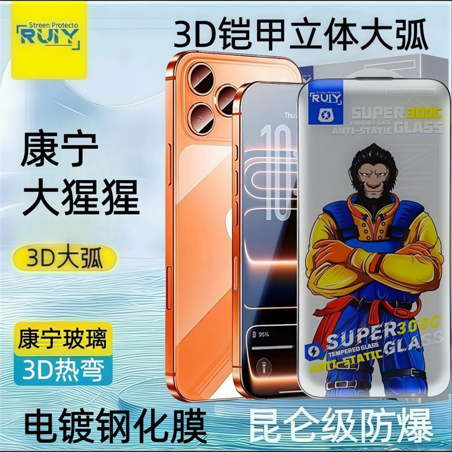 [猩猩大弧边]适用苹果17promax钢化膜3D立体iPhone16pro防偷窥15细边新air全屏14plus抗指纹13/12/11手机贴膜