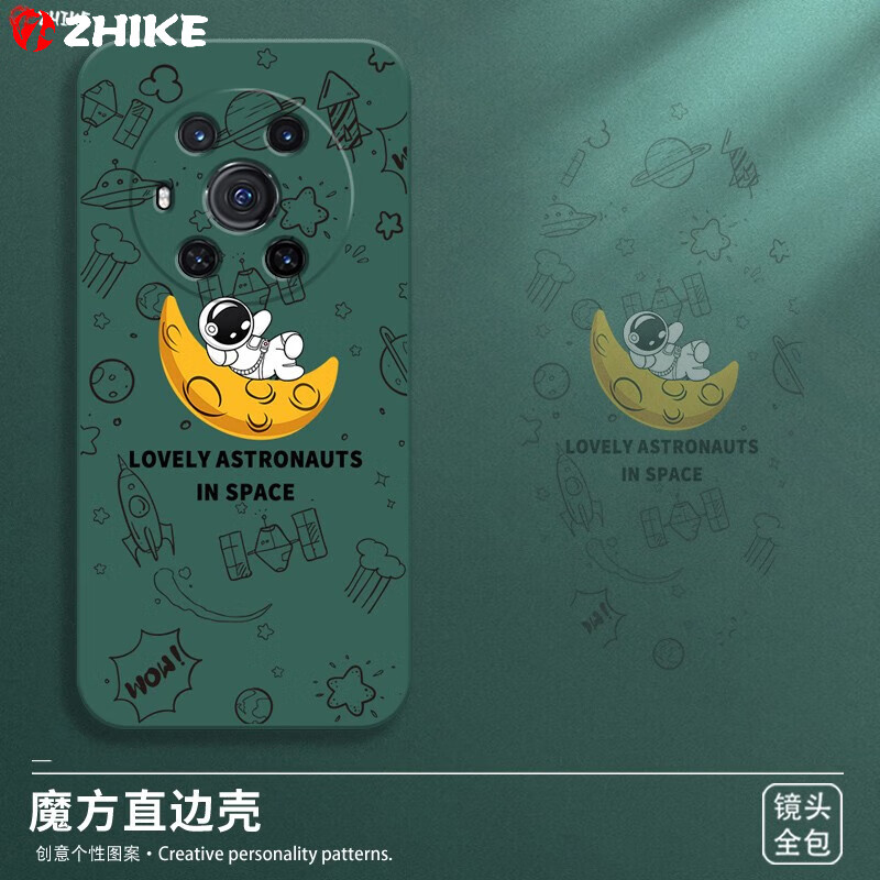 芝客 荣耀magic3手机壳 magic3pro液态硅胶至臻版全包直边保护套防摔卡通宇航员动漫女软壳 Magic3【暗夜绿-月亮太空人】