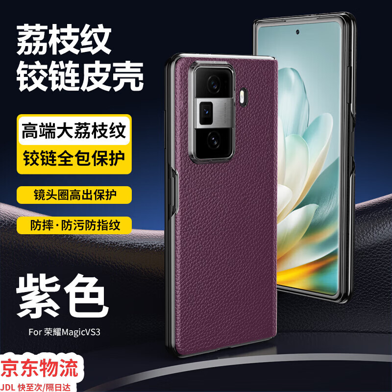 麦享能荣耀Magic Vs3手机壳真皮 荣耀Magic V3折叠屏保护套铰链中轴全包防摔高端轻奢新款单后壳不带前屏 荣耀Magic Vs3【紫色】
