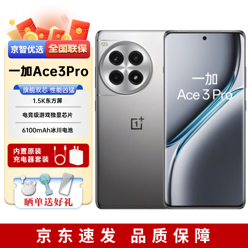 一加Ace3 Pro【24期免息】第三代骁龙8旗舰芯片6100mAh新品5GAI手机 钛空镜银 24GB+1TB 【24期|免息】